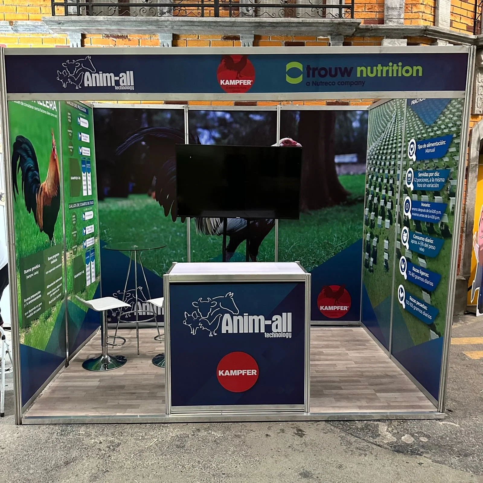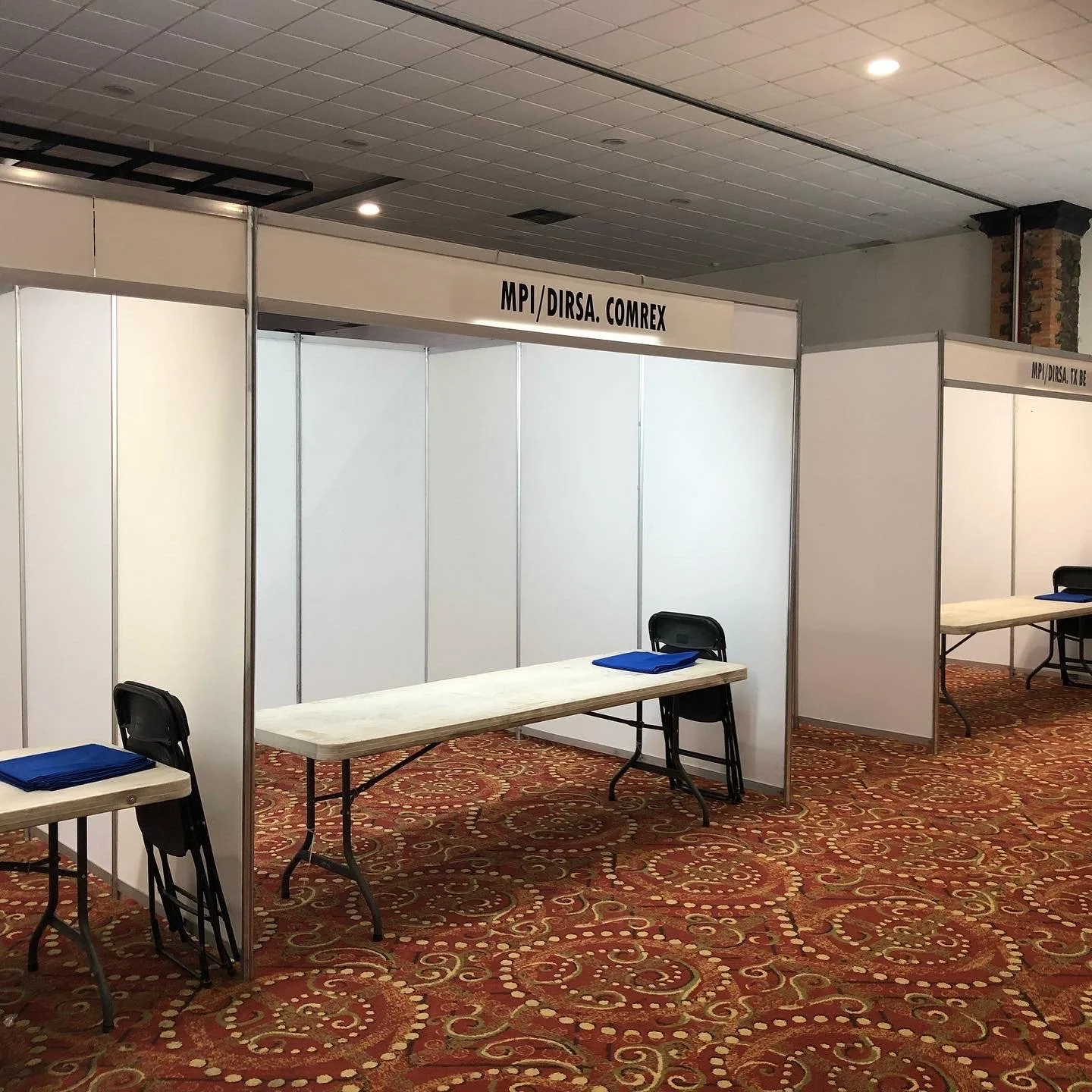 Nuestros stands institucionales de aluminio están diseñados para eventos que requieren montar desde decenas hasta cientos de espacios de exhibición de forma uniforme, funcional y estética.